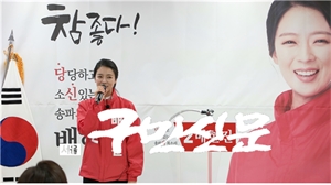 ¼ÛÆÄÀ» ±¹È¸ÀÇ¿ø Àç¼±°Å ÀÚÀ¯Çѱ¹´ç ¹èÇöÁø È帴 13ÀÏ ¼±°Å»ç¹«¼Ò °³¼Ò½ÄÀ» ¿­°í ¡®¹Ì·¡ ¼ÛÆÄ, ǰ°Ý ¼ÛÆÄ¡¯ÀÇ ºñÀüÀ» Á¦½ÃÇß´Ù. ¹è È帴 Àλ縻À» ÅëÇØ ¡°...