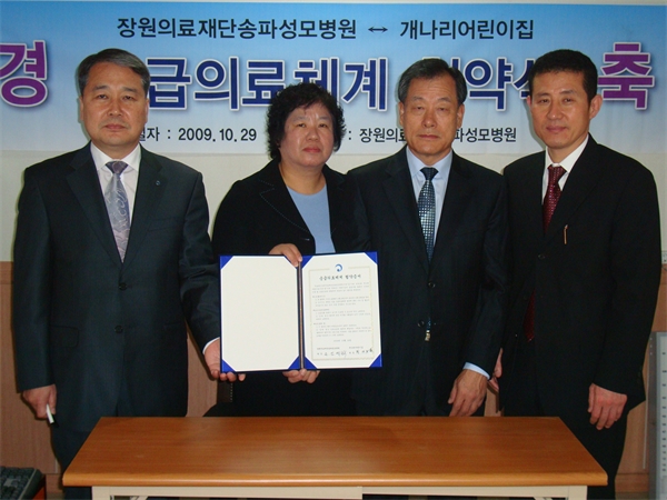 ±¹¹Î°Ç°º¸Çè°ø´Ü ¼ÛÆÄÁö»ç(Áö»çÀå ¿ì¿ëÁÖ)´Â 29ÀÏ(¸ñ) Àå¿øÀÇ·áÀç´Ü¼ÛÆÄ¼º¸ðº´¿ø ȸÀǽǿ¡¼ Àå¿øÀÇ·áÀç´Ü¼ÛÆÄ¼º¸ðº´¿ø°ú °³³ª¸®¾î¸°ÀÌÁý°£ ÀÀ±ÞÀÇ·áü°è Çù¾à½ÄÀ» ü°áÇÏ¿´´Ù.