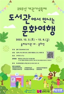 ¼­¿ïƯº°½Ã±³À°Ã»¼ÛÆÄµµ¼­°ü(°üÀå ¼Õ¿µ¼ø)Àº °³°ü 29ÁÖ³âÀ» ¸ÂÀÌÇÏ¿© ¡ºµµ¼­°ü¿¡¼­ ¸¸³ª´Â ¹®È­¿©Çà¡»À» 12¿ù 2ÀÏ(Åä)ºÎÅÍ 12¿ù 8ÀÏ(±Ý)±îÁö ÀÏÁÖÀϰ£ ¿î¿µ...