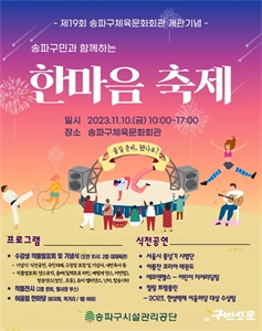 ¼ÛÆÄ±¸½Ã¼³°ü¸®°ø´Ü(ÀÌ»çÀå Ȳ´ë¼º) ¼ÛÆÄ±¸Ã¼À°¹®È­È¸°ü(ÀÌÇÏ ¡®È¸°ü¡¯)¿¡¼­ °³°ü 19ÁÖ³âÀ» ¸Â¾Æ 11¿ù 10ÀÏ(±Ý) ¿ÀÀü 10½ÃºÎÅÍ ¿ÀÈÄ 17½Ã±îÁö ¼ÛÆÄ±¸¹Î°ú ...