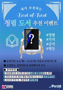 ¼­¿ïƯº°½Ã±³À°Ã»°­µ¿µµ¼­°ü(°üÀå ÃÖº´·Ê)Àº û·Å¹®È­¸¦ È«º¸ÇÏ°í µµ¼­°üÀÇ Ã»·Å ÀÇÁö¸¦ ³Î¸® ¾Ë¸®±â À§ÇØ ¡®Ã»·Åµµ¼­ Ãßõ À̺¥Æ®¡¯¸¦ ½Ç½ÃÇÑ´Ù. 8¿ù 7ÀÏ(¿ù)ºÎ...