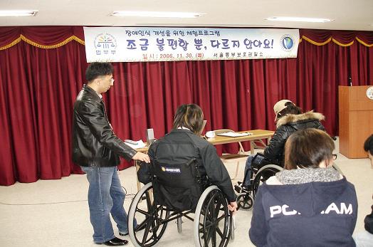 ÇÁ·Î±×·¥¿¡ Âü°¡ÇÑ º¸È£°üÂû û¼Ò³âµéÀº ¿µ»óÀÚ·á ½Ãû°ú Àå¾Ö¿¹¹æ±³À°, Àå¾ÖÀÎÀÇ È°µ¿À» µµ¿ÍÁÖ´Â ±â±¸ÀÎ º¸À屸(ÈÙü¾î, ½Ã°¢Àå¾ÖÀοë ÈòÁöÆÎÀÌ µî)ÀÇ Á÷Á¢ üÇèÀ» ÅëÇØ ºñÀå¾ÖÀÎÀ¸·Î¼´Â ¾ËÁö ¸øÇß´ø ÀÏ»ó»ýȰ ¼ÓÀÇ Àå¾ÖÀÎÀÌ °Þ´Â ºÒÆíÇÔ°ú ¾î·Á¿òÀ» ÀÌÇØÇÏ°Ô µÇ¾ú°í Àå¾ÖÀο¡°Ô ¾î¶² µµ¿òÀÌ ÇÊ¿äÇÑÁö ¾Ë°Ô µÈ ÀÇ¹Ì ÀÖ´Â ½Ã°£À̾ú´Ù´Â ¼Ò°¨À» ¹ßÇ¥ÇÏ¿´´Ù.