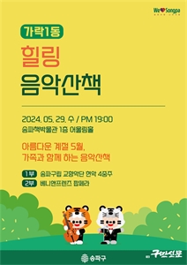¼ÛÆÄ±¸(±¸Ã»Àå ¼°¼®)°¡ 29ÀÏ ¿ÀÈÄ 7½Ã ¼ÛÆÄÃ¥¹Ú¹°°ü 1Ãþ ¾î¿ï¸²È¦¿¡¼ ¡®°¡¶ô1µ¿ Èú¸µ À½¾Ç»êÃ¥¡¯À» °³ÃÖÇÑ´Ù°í ¹àÇû´Ù. °¡Á¤ÀÇ ´Þ 5¿ùÀ» ¸Â¾Æ ±¸¹ÎµéÀÇ ...