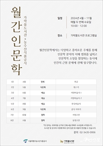 ¼­¿ïƯº°½Ã³ó¼ö»ê½Äǰ°ø»ç(»çÀå ¹®¿µÇ¥, ÀÌÇÏ ¡®°ø»ç¡¯)°¡ ¿î¿µÇÏ´Â °¡¶ô¸ôµµ¼­°üÀº ¿ÃÇØ 4¿ùºÎÅÍ ¸Å¿ù µÎ ¹øÂ° ¼ö¿äÀÏ Àι®ÇÐ ¹®È­ ÇÁ·Î±×·¥ÀÎ ¡®¿ù°£Àι®ÇС¯À» ...