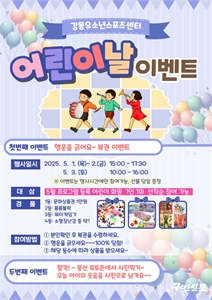 ¾î¸°À̳¯, °­µ¿À¯¼Ò³â½ºÆ÷Ã÷¼¾ÅÍ¿¡¼­ ÷åܬÇÑ õÚåãÀ» ¸¸µé¾î¿ä 5¿ù 1ÀϺÎÅÍ 3ÀϱîÁö 3Àϰ£ Çà¿îº¹±Ç °æÇ° À̺¥Æ® ¹× Æ÷ÅäÁ¸ ¿î¿µ