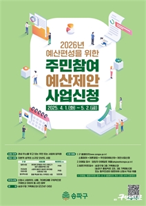 ¼ÛÆÄ±¸(±¸Ã»Àå ¼­°­¼®)°¡ 5¿ù 2ÀϱîÁö 2026³â ±¸ ¿¹»êÆí¼ºÀ» À§ÇÑ ÁÖ¹ÎÂü¿©¿¹»ê Á¦¾È»ç¾÷À» °ø¸ðÇÑ´Ù°í ¾Ë·È´Ù. ÁÖ¹ÎÂü¿©¿¹»êÁ¦´Â Åõ¸íÇϰí... [±¸Á¤¼Ò½Ä] ±¸¹Î½Å¹®