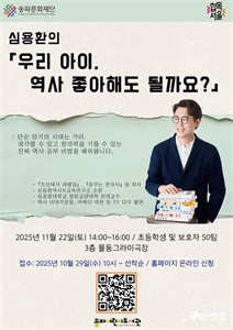 ¼ÛÆÄ¾î¸°À̵µ¼­°ü ¼ÛÆÄ¹®È­Àç´Ü(´ëÇ¥ À̵¿±Ù) ¼Ò¼Ó ¼ÛÆÄ¾î¸°À̵µ¼­°ü¿¡¼­ 11¿ù 22ÀÏ(Åä) ¿ÀÈÄ 2½Ã ¿ª»çÇÐÀÚ ½É¿ëȯ°ú ÇÔ²² [¿ì¸® ¾ÆÀÌ, ¿ª... [¹®È­¤ý±³À°¤ýüÀ°] ±¸¹Î½Å¹®