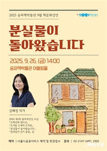 °¡À»¿£ ¡®¼ÛÆÄóüÚÏڪν¡¯ÀÌ Ê«ðé ³ªµéÀÌ·Î Á¦°Ý! 9¿ù 26ÀÏ 14½Ã ¼ÛÆÄÃ¥¹Ú¹°°ü 1Ãþ ¡ãÃ¥¹®È­ °­¿¬ ÁøÇࡦ±èÇýÁ¤ ÀÛ°¡ ÃÊû